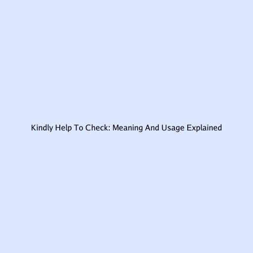 Kindly Help To Check: Meaning And Usage Explained